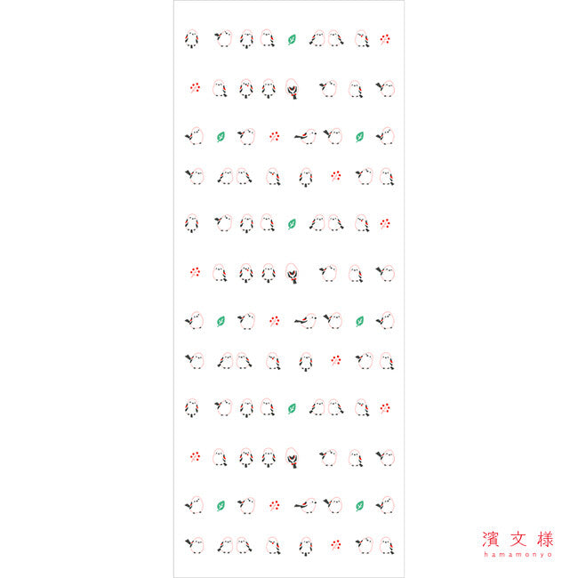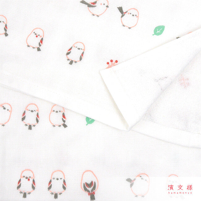The design comes from HAMAMONYO in Yokohama. Thanks to the traditional Yokohama wet-dyeing technique, the colors remain colorfast and the outlines of the small birds are razor-sharp, giving the towel a particularly high-quality feel.